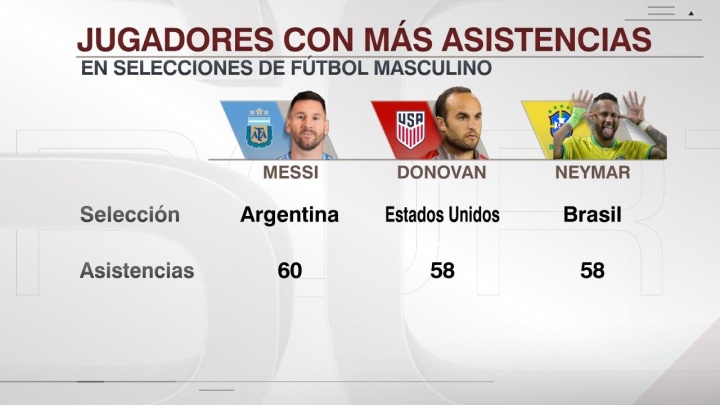 又一项记录 !梅西60助独享历史国家队助功 王,内马尔、多诺万58助