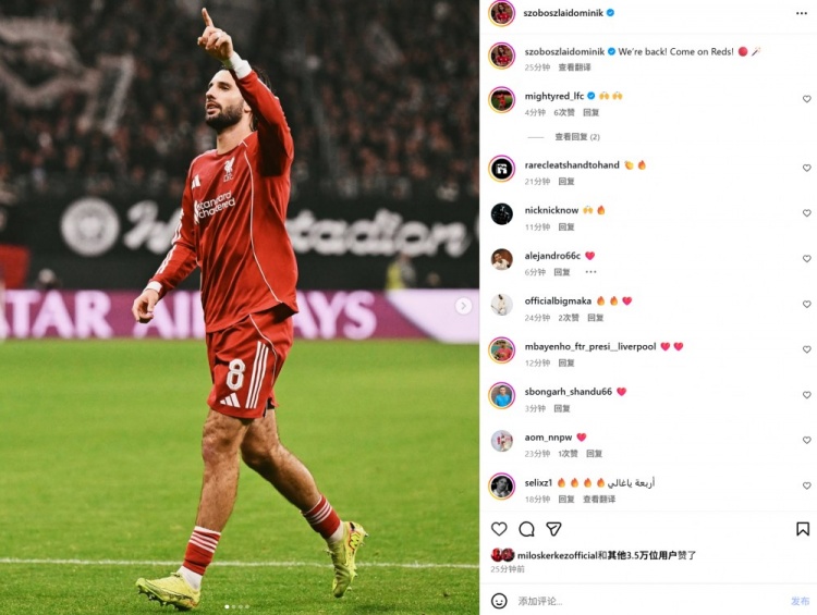 终结4连败,传射建功的索博斯洛伊社媒晒照庆祝:我们回来了!