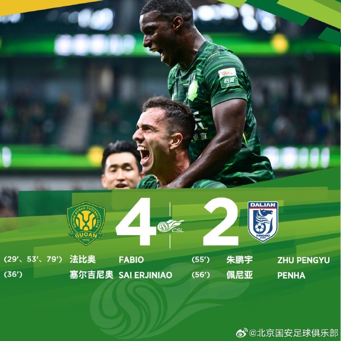最终,北京国安主场作战 4-2战胜大连英博海发。