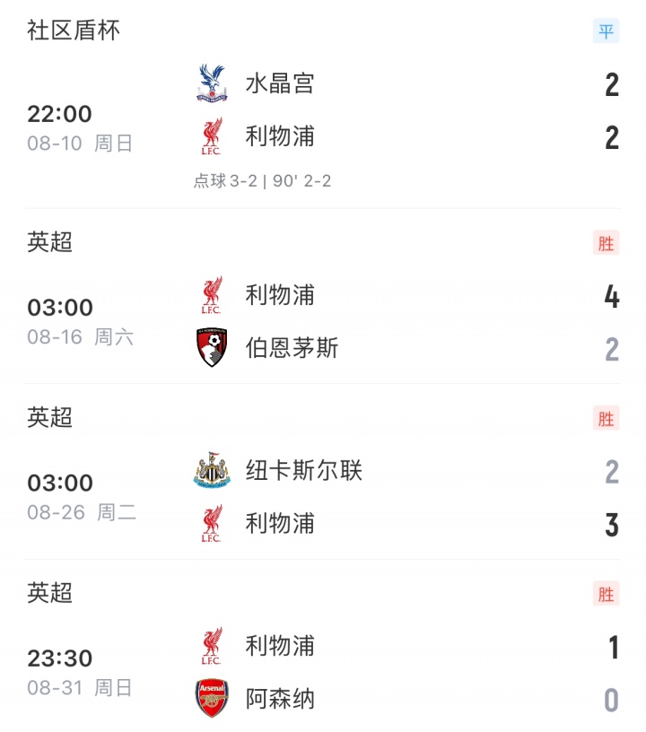 从社区盾杯开始,足球直播无插件免费在线观看利物浦8场赛事 攻入18球却丢了10球,目前各项赛事已连续6场1球险胜!