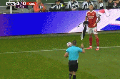 9月29日讯 昨晚阿森纳vs纽卡的英超,主裁判 不允许卡拉菲奥里擦球。