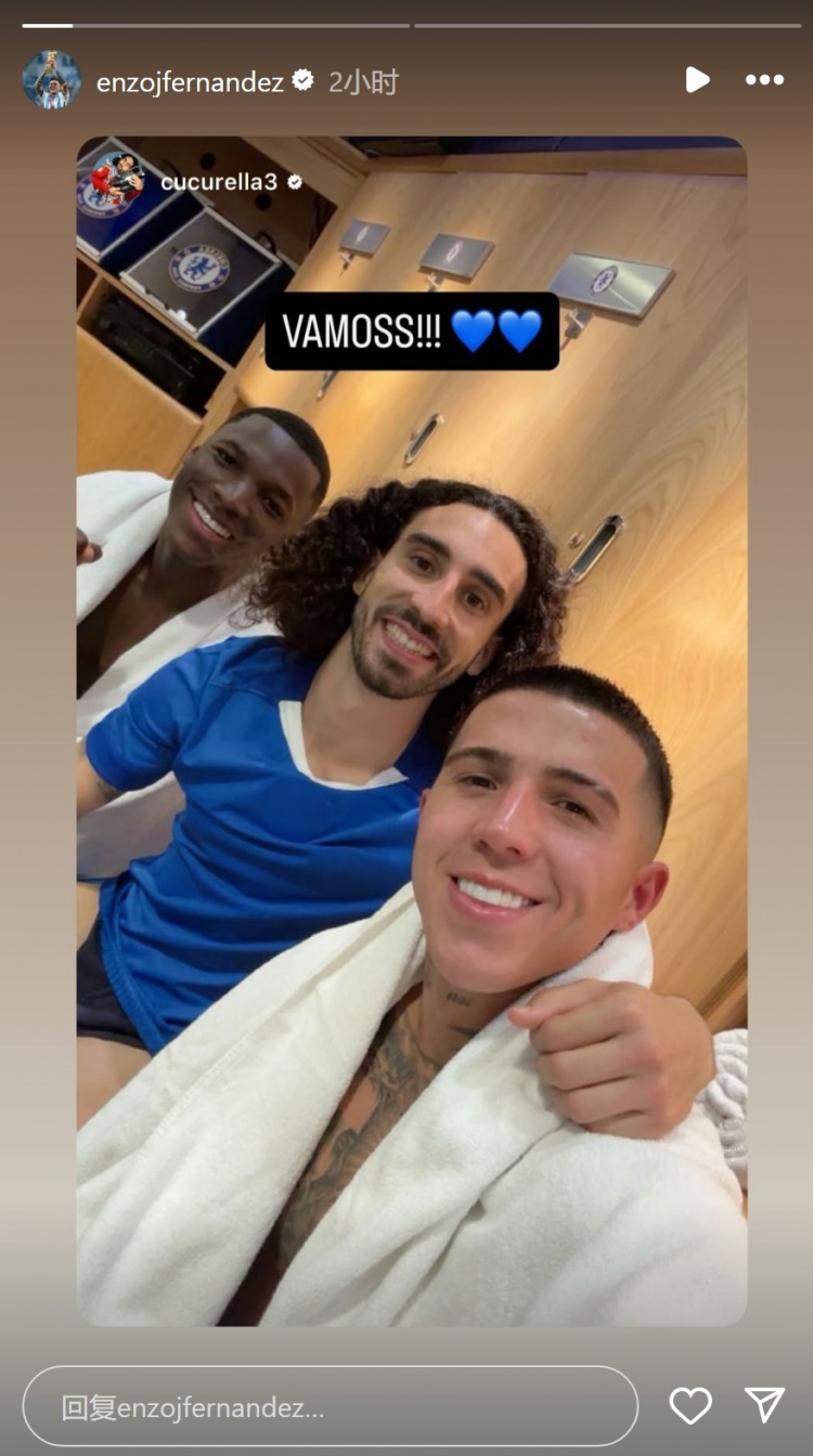恩佐社媒转发与库库雷利亚、凯塞多的合照,庆祝球队取胜。