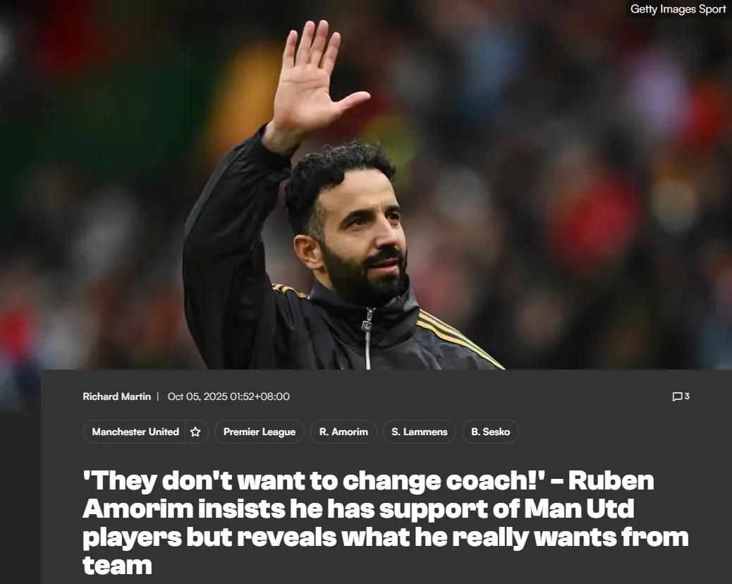 在2-0战胜桑德兰之后,阿莫林声称曼联球员依然支持他。