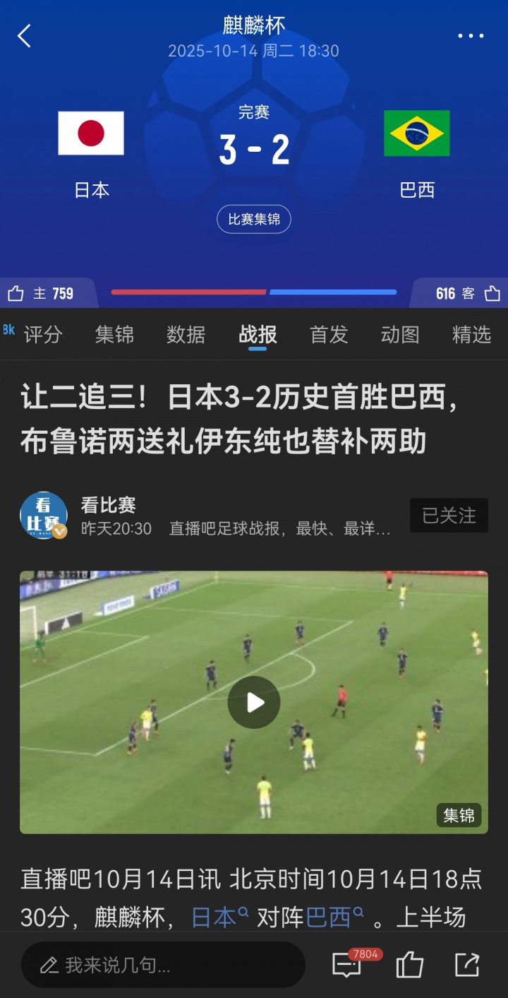 > 让2追3的一天!日本男足让2追3反转 巴西 日本男乒被让2追3不敌中国