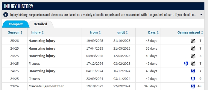 据德转数据统计 ,欧洲杯直播吧内马尔2年来伤缺天数合计592天,缺席88场赛事 。
